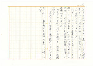 アルファ・ホームページに向けて、飯田様より原稿用紙にメッセージをいただきましたので、ご紹介させていただきます。