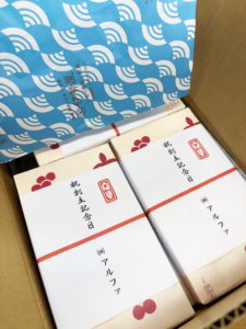 アルファでは、創立記念日に毎年小田原の有名な和菓子店『伊勢屋』さんのお赤飯を社員に配布しております。
