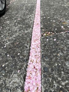 まあきれいに溝にたくさんの桜の花びらが埋まっておりました。