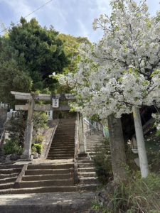 自宅付近の神社脇の白い桜が満開でした。